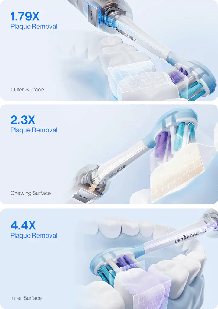 Powered by AI positional recognition, usmile Y10 PRO pinpoints exactly where you missed, giving every area the attention it needs.