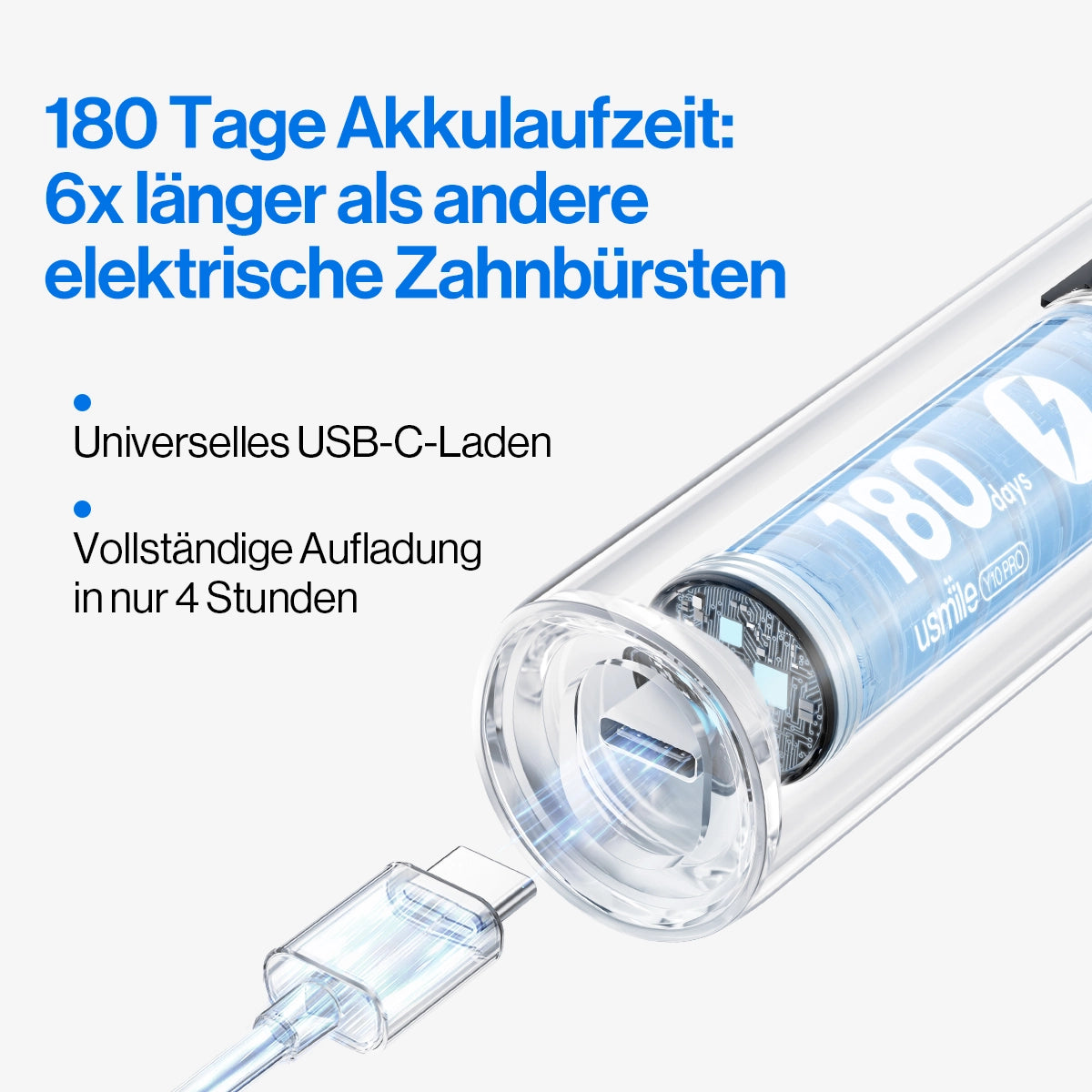 - 180 Tage Laufzeit – 6x länger als bei anderen elektrischen Zahnbürsten